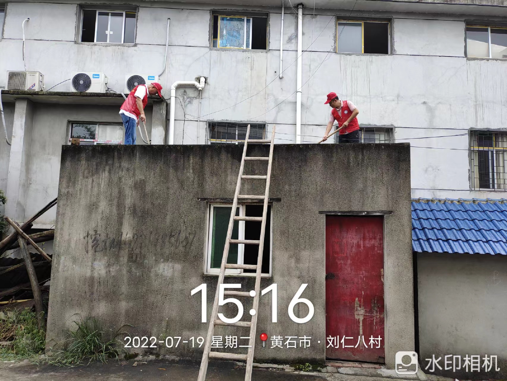 黄春香是刘仁八村苏家畈湾的村民,她家房前有一厨房。今年入夏以来,每逢大雨,房顶积水、厨房漏水、掉土现象严重,给生活造成了很多不便。由于她年老体弱,无法自行处理。